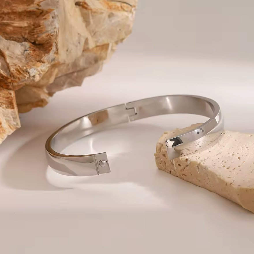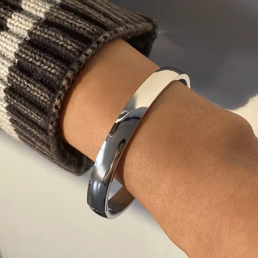 El brazalete Solid destaca por su forma continua y pulida, diseñada para envolver la muñeca con una presencia discreta pero firme. Su silueta limpia y sin ornamentos lo convierte en una pieza esencial: moderna, versátil y fácil de integrar en cualquier estilo.